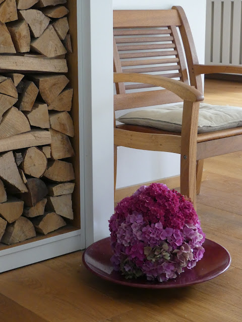Eigentlich finde ich meinen Garten momentan ziemlich farblos. Wenn die Hortensien nicht mit ihrer Farbkraft blühen würden, wäre er fast nur grün.
