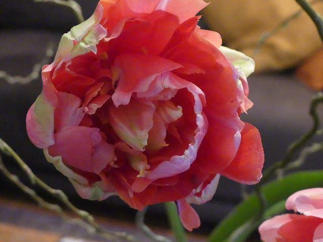 Vor ein paar Tagen wurde ich mit einigen ungebundenen Tulpen beschenkt. Drei französische Tulpen und dazu zart rosa anmutende Schönheiten. Beide Sorten waren gefüllt und entfalteten unaufgefordert ihre ganze Pracht!